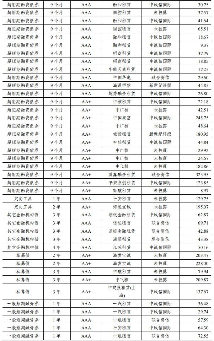 (五)新发行非结构化债券中,9个月AA+主体评级债券发行利率和发行利差的差异最大,1年期AA+主体评级债券发行利率和发行利差的差异次之。大部分AAA级金租公司发行利差小于同级别商租公司,不同AAA级商租公司之间存在一定差异,反映投资者对同是AAA级主体评级的商租公司认可度存在一定差异。
