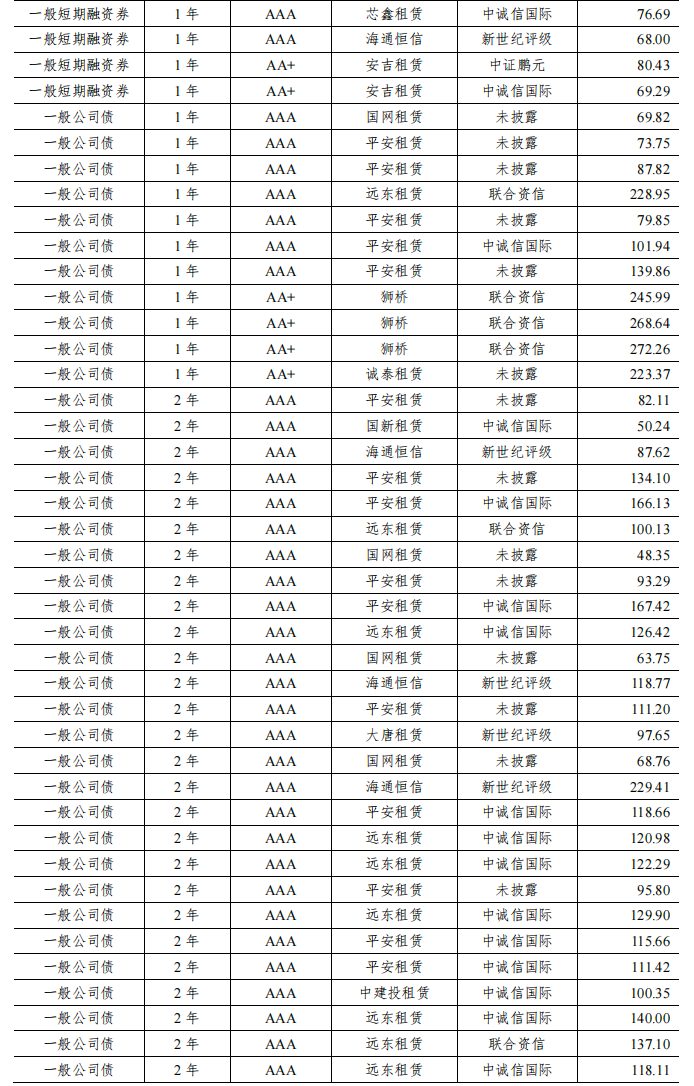 (三)融资租赁行业债券发行规模较上年略有上升,结构化产品规模略高于非结构化产品,非结构化债券发行主体以AAA级为主。