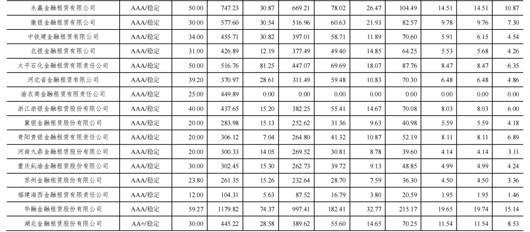 2.资产质量方面,因业务定位差异较大,不同租赁公司资产质量将呈现一定分化,资质较差的融资租赁公司的资产质量将面临较大的下行压力。